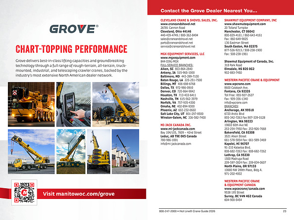 Grove delivers best-in-class lifting capacities and groundbreaking technology through a full range of rough-terrain, all-terrain, truckmounted, industrial, and telescoping crawler cranes, backed by the industry’ s most extensive North American dealer network.