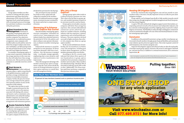 In addition to the potential for premium savings, member-owned group captives tend to benefit members through greater financial flexibility and customized crane industry specific protection against losses. This is due to greater control of and transparency into insurance program costs.