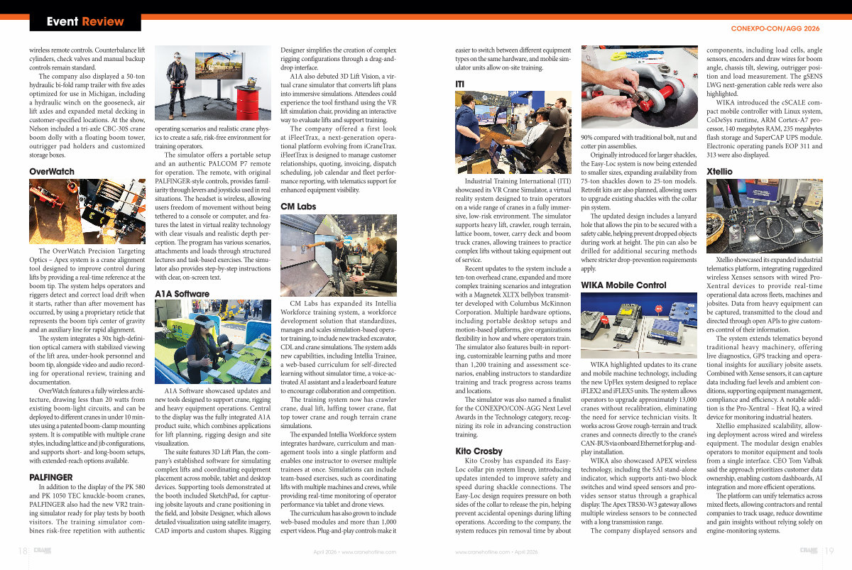 Recent updates to the system include a ten-ton overhead crane, expanded and more complex training scenarios and integration with a Magnetek XLTX bellybox transmitter developed with Columbus McKinnon Corporation. Multiple hardware options, including portable desktop setups and motion-based platforms, give organizations flexibility in how and where operators train. The simulator also features built-in reporting, customizable learning paths and more than 1,200 training and assessment scenarios, enabling instructors to standardize training and track progress across teams and locations.