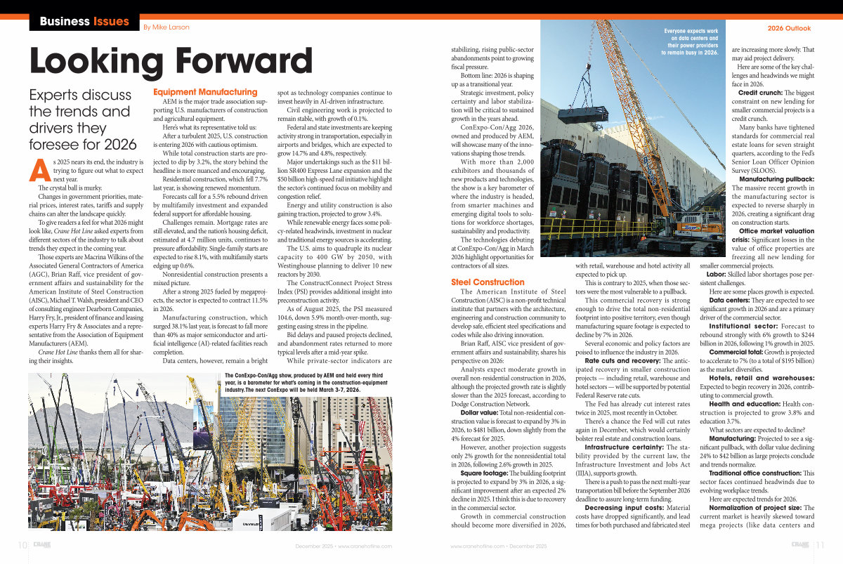 To give readers a feel for what 2026 might look like, Crane Hot Line asked experts from different sectors of the industry to talk about trends they expect in the coming year.
