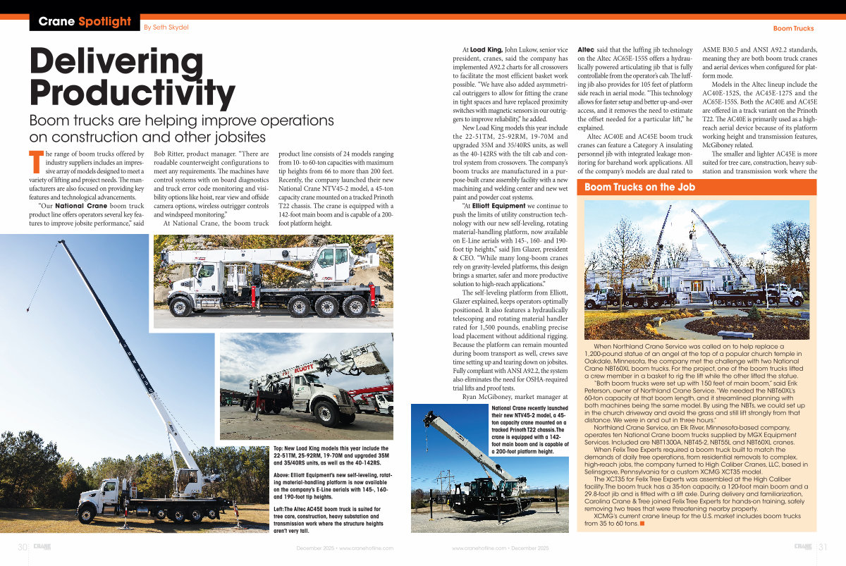 National Crane recently launched their new NTV45-2 model, a 45- ton capacity crane mounted on a tracked Prinoth T22 chassis. The crane is equipped with a 142- foot main boom and is capable of a 200-foot platform height.