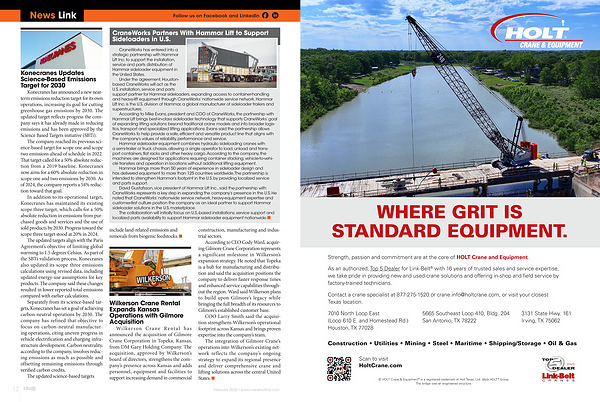 Under the agreement, Houstonbased CraneWorks will act as the U. S. installation, service and parts support partner for Hammar sideloaders, expanding access to container-handling and heavy-lift equipment through CraneWorks’ nationwide service network. Hammar Lift Inc. is the U. S. division of Hammar, a global manufacturer of sideloader trailers and superstructures.