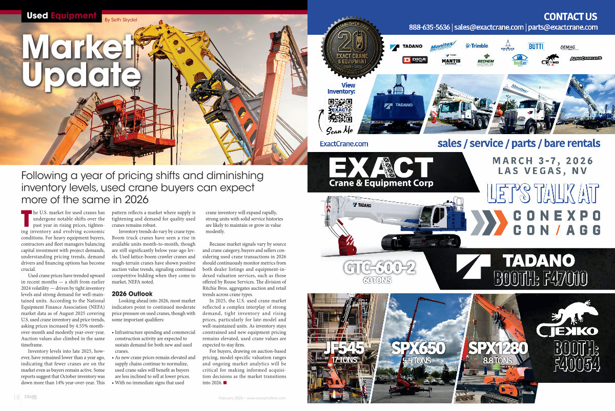 Following a year of pricing shifts and diminishing inventory levels, used crane buyers can expect more of the same in 2026