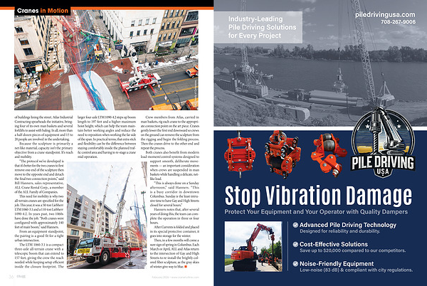 “ The protocol we’ ve developed is that it’ s better for the two cranes to first remove one end of the sculpture then move to the opposite end and detach the final two connection points,” said Bill Hanners, sales representative, ALL Crane Rental Corp., a member of the ALL Family of Companies.