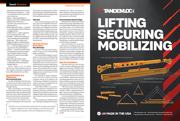 Topics will include how AI and connected systems are reshaping jobsite safety and productivity, the adoption of greener materials and construction practices and what future-ready workforce strategies look like. For crane operators and rigging professionals, these sessions provide insight into how technology is changing project planning, equipment deployment and safety oversight.