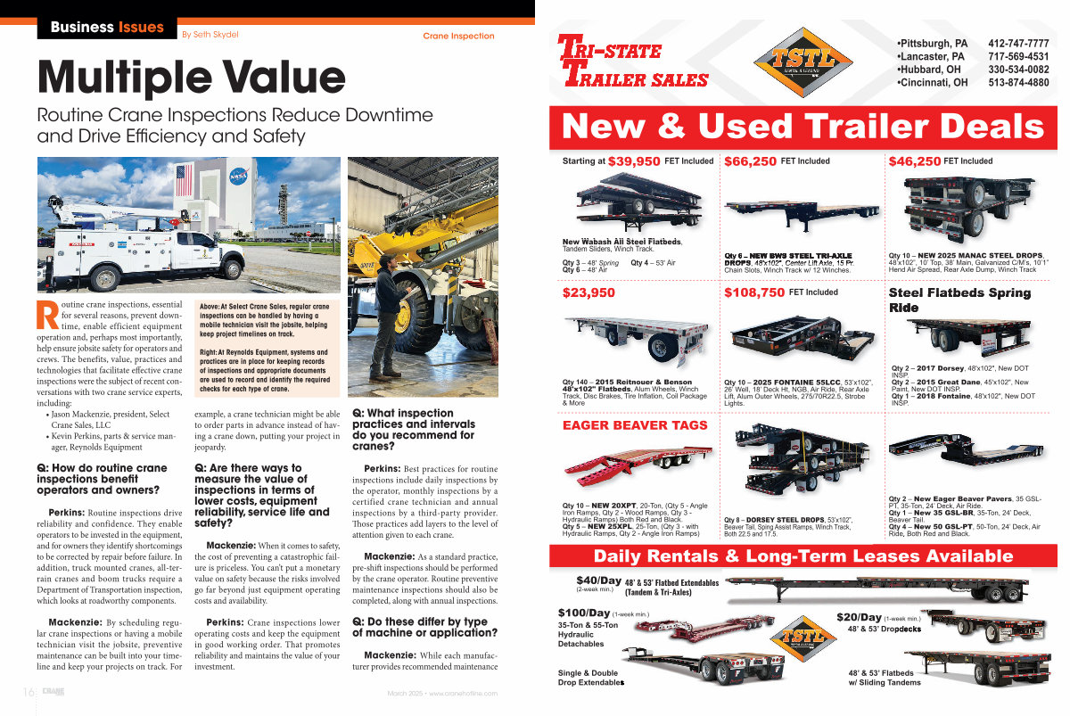 Perkins: Crane inspections lower operating costs and keep the equipment in good working order. That promotes reliability and maintains the value of your investment.