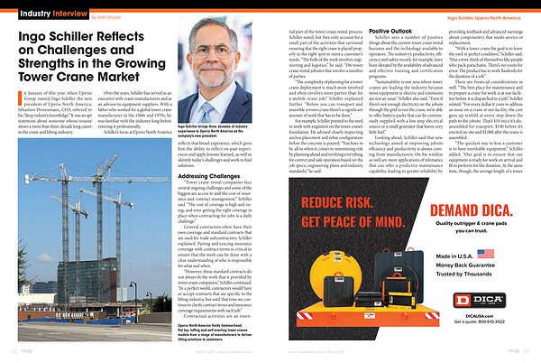 Over the years, Schiller has served as an executive with crane manufacturers and as an advisor to equipment suppliers. With a father who worked for a global tower crane manufacturer in the 1960s and 1970s, he was familiar with the industry long before entering it professionally.