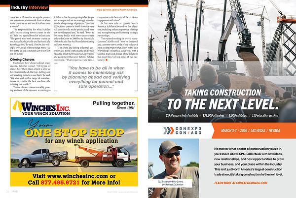 Ingo Schiller, Uperio North America crane job is 12 months, so regular preventive maintenance is essential. Even on a bare rental crane we see and touch it at least once a month.”