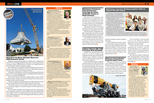 • Wilkerson Crane Rental, Inc. has appointed Cody Ward as its new CEO. Ward brings a wealth of experience to the role, having established a strong reputation as an entrepreneurial leader with a passion for the equipment industry.