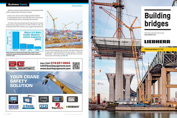 Atlanta continues to lead primary U. S. data center markets in active construction capacity, driving sustained demand for large crawlers and all-terrain cranes. electrical and finishing scopes of work. And while markets tied to data centers and infrastructure are less cyclical— and more predictable— than discretionary commercial work, across the board cranes will stay busy in 2026.