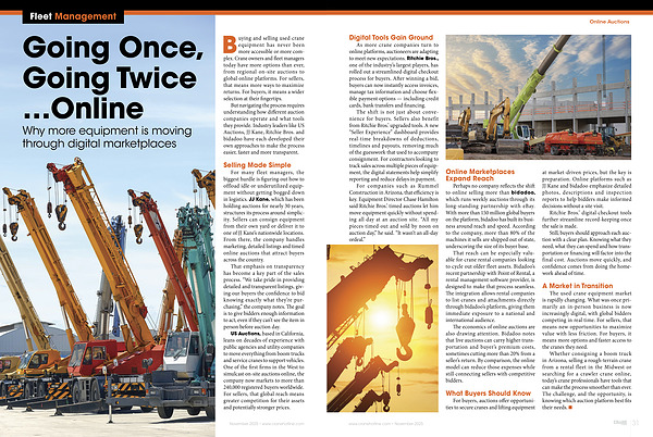 US Auctions, based in California, leans on decades of experience with public agencies and utility companies to move everything from boom trucks and service cranes to support vehicles. One of the first firms in the West to simulcast on-site auctions online, the company now markets to more than 240,000 registered buyers worldwide. For sellers, that global reach means greater competition for their assets and potentially stronger prices.