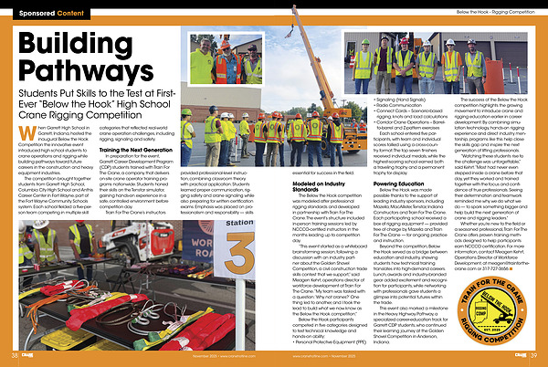 When Garrett High School in Garrett, Indiana, hosted the inaugural Below the Hook Competition the innovative event introduced high school students to crane operations and rigging while building pathways toward future careers in the construction and heavy equipment industries.