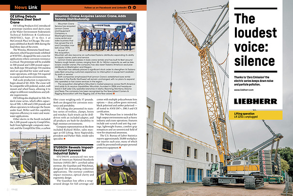 OZ Lifting also displayed its Tele-Pro davit crane series, which offers capacities of 500, 1,200 and 2,500 pounds and allows operators to telescope the boom under load. Miller said this capability improves efficiency in water and wastewater applications.